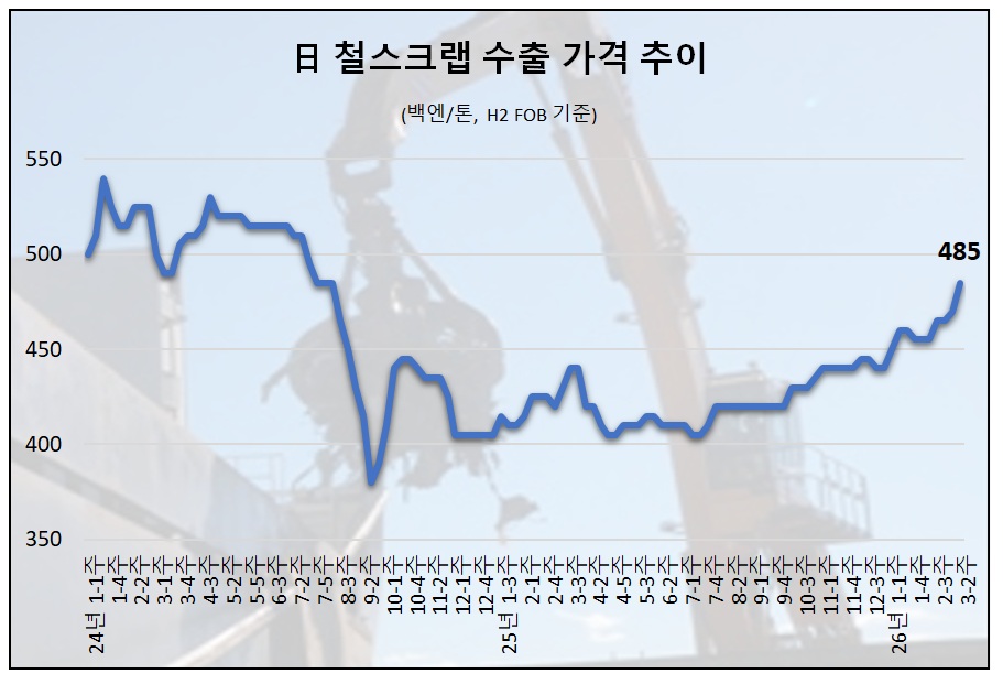 업계에 따르면 지난주 일본에서 철스크랩 수출 운임은 호르무즈 해협 봉쇄 전과 비교해 최대 톤당 15달러 수준 상승했다.