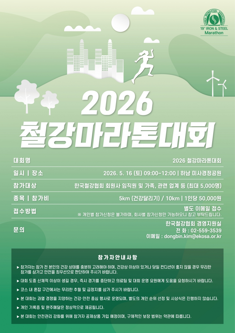 2026 철강말라톤 대회는 오는 5월 16일 오전 9시부터 경기도 하남시 미사경정공원에서 열릴 예정이다.