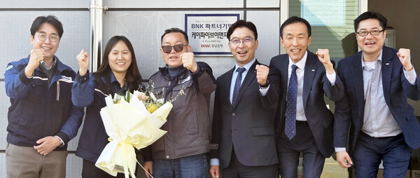 한편 임재문 부행장은 케이파이브이앤지 본사를 방문해 김장호 대표와 BNK 파트너기업 현판식을 가졌다.
