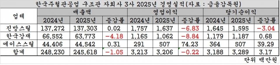 한국주철관공업 계열사 구조관 3사, 지난해 건설 수요 감소에도 실적 방어 성공
