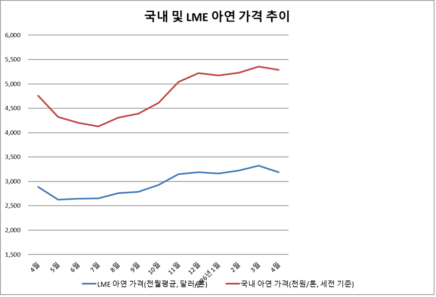 국내 주요 아연 생산업체인 고려아연과 영풍이 4월 국내 아연 판매가격을 전월 대비 인하해 고지했다. 이는 런던금속거래소(LME)에서의 3월 아연 평균가격 하락이 영향을 미친 것으로 분석된다.