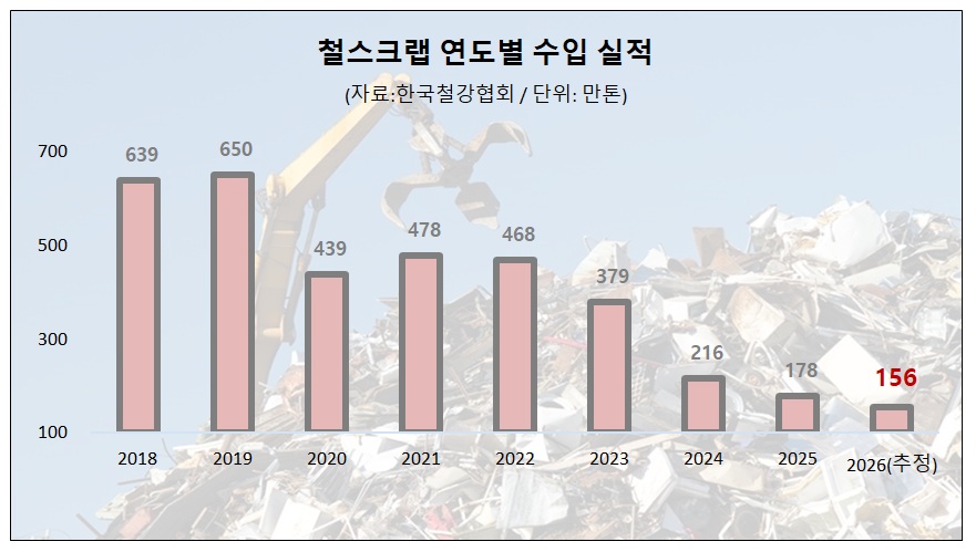국내 철스크랩 수입, 올해도 '역대 최저권' 출발