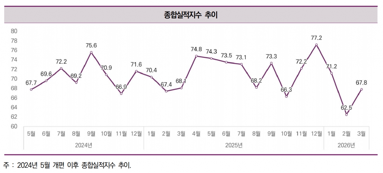 앞서 CBSI는 연말 수주 증가에 지난해 12월(77.2)까지 급등했으나, 이후 다시 급락하며 올 2월(62.5) 실적은 지수 개편 이래 최저치를 기록한 바 있다.