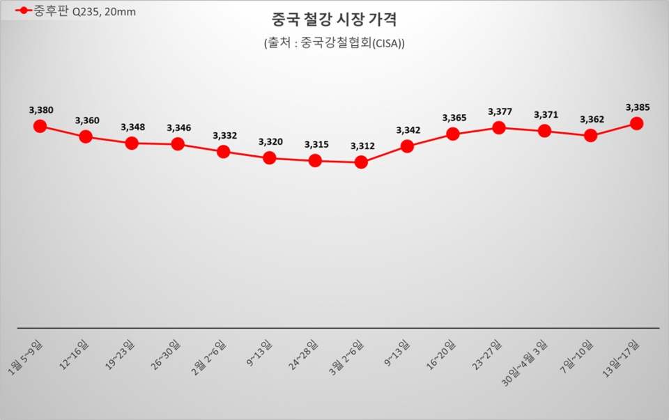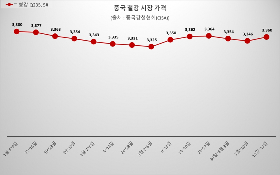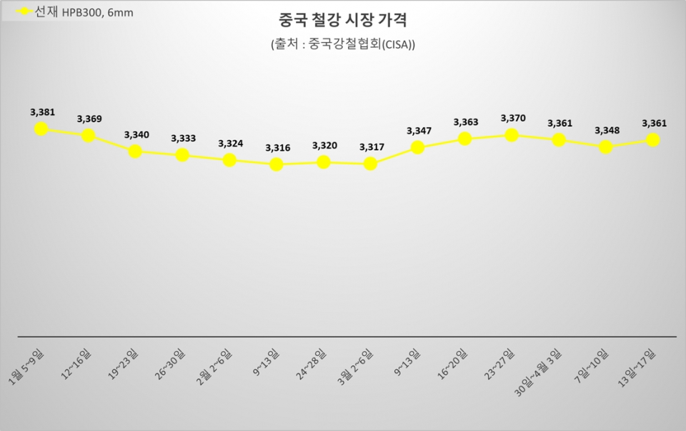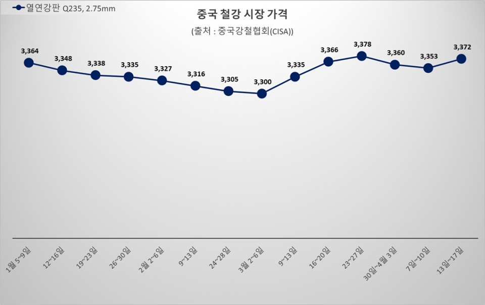 - ■ 中 열연강판價, 3,300선 문턱서 정체