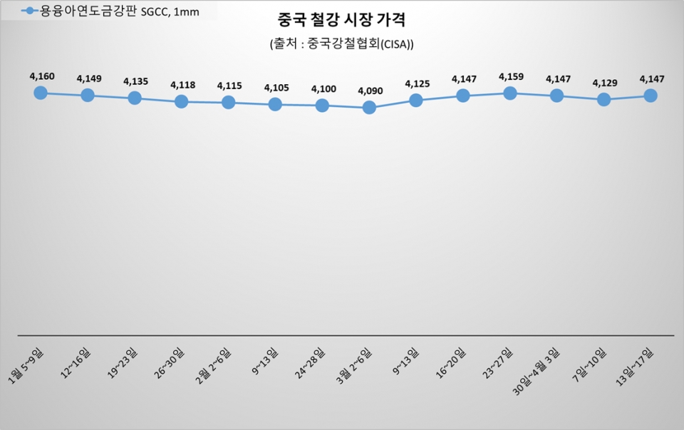 - ■ [오늘 중국은] CISA 4월 첫째 주 가격, 전주比 소폭 하락