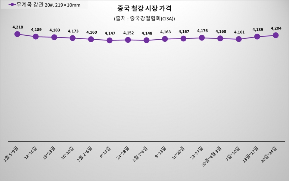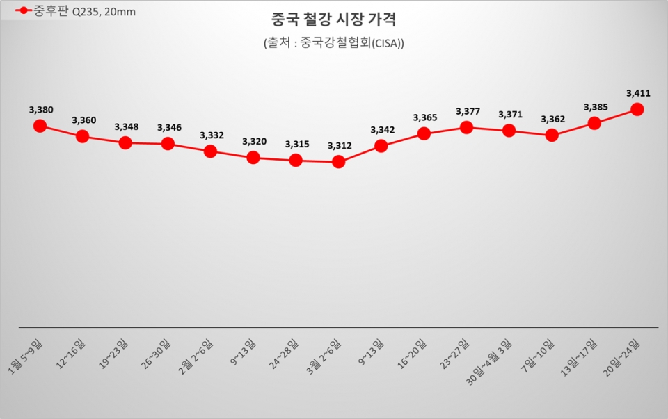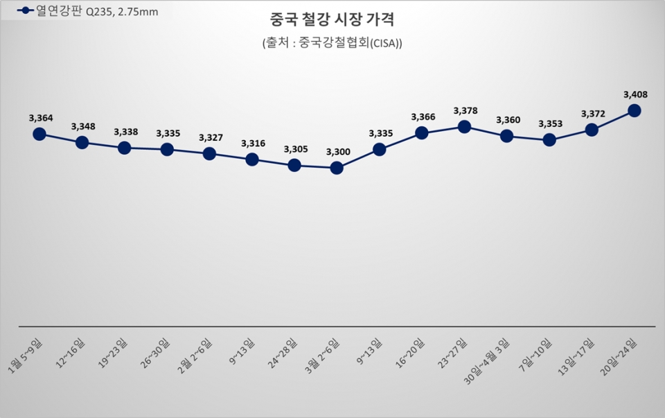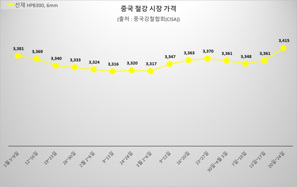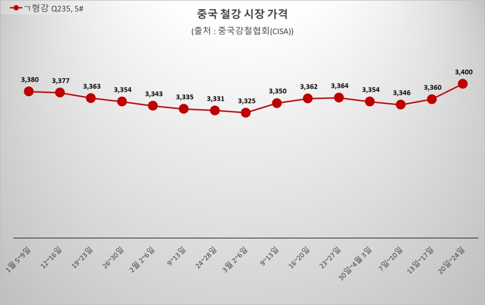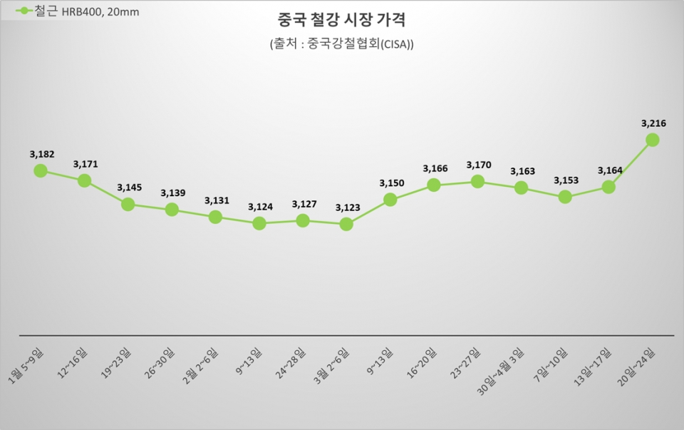 - ■ 中 장쑤샤강, 4월 말 선재·철근 가격 톤당 80~100위안 인하