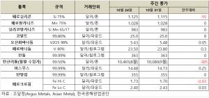 [표] 희유금속 가격 동향(10월 31일)