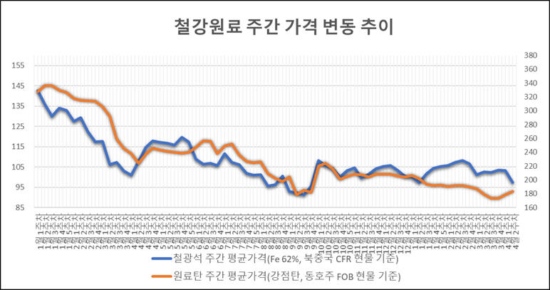 [표] 일일 철강 원료 가격 동향(12월 12일)