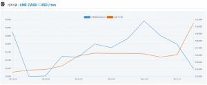 한편 미국 내 전기동 가격 역시 프리미엄을 유지하고 있다. 관세 부과를 우려한 선적 물량이 미국으로 집중되면서, 뉴욕상업거래소(NYMEX)의 전기동 가격은 LME 가격 대비 9거래일 연속 톤당 1,000달러 이상 높은 수준을 유지하고 있다. 이는 전기동 가격의 약 10%에 해당하는 프리미엄으로, 역사적으로 매우 높은 수준이다.