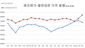 열연강판 유통가격 상승 흐름…제조원가는 2월 소폭 조정