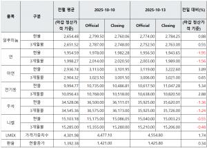 [표] LME 비철금속 및 환율 동향(10월 13일)