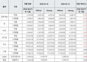 - ■ [표] 일일 철강 원료 가격 동향(2월 19일)