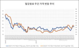 산업통상자원부 통계에 따르면, 철광석 가격(Fe 62%, 북중국 CFR 현물 기준)은 6월 셋째 주 평균 톤당 93.39달러로, 한 주 전과 비교해 1.70달러 하락하며 4주 연속 올해 최저 수준을 나타냈다. 원료탄 가격(강점탄, 동호주 FOB 현물 기준)도 같은 기간 평균 톤당 175.40달러로, 전주대비 2.60달러 떨어졌다.