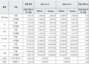[표] LME 비철금속 및 환율 동향(12월 31일)