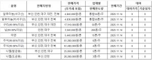 - ■ [표] 조달청 방출 가격(11월 11일)