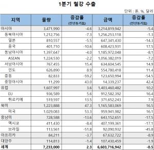 수출, 1분기 기준 3년 연속 증가, 수출액 4년 연속 감소 수입 전년比 1.3%↓, 냉연 31.8%·반제품 35.1%·봉형강류 9%↑