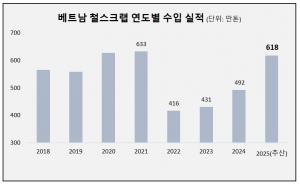 앞서 베트남 철스크랩 수입은 2021년 633만톤으로 사상 최대치를 기록한 바 있으나, 러시아의 우크라이나 침공 이후 급격한 수요 조정과 함께 2022년부터 400만톤대로 내려앉은 바 있다.