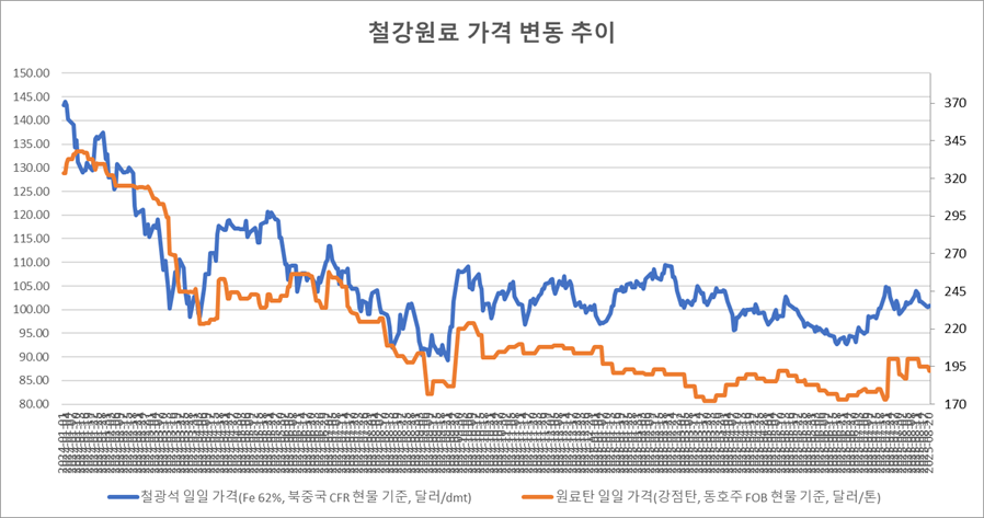 [표] 일일 철강 원료 가격 동향(9월 23일)