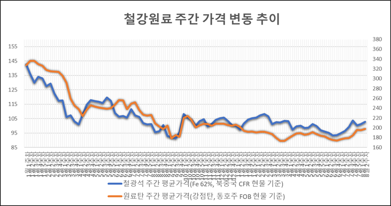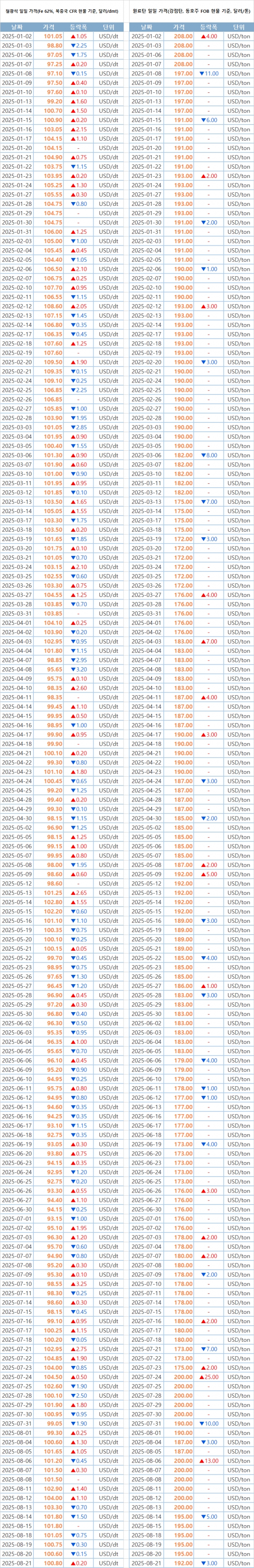 [표] 일일 철강 원료 가격 동향(8월 21일)