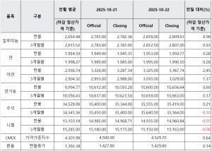 [표] LME 비철금속 및 환율 동향(10월 22일)