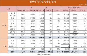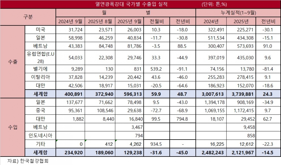 - ■ 철강 수출, 9월 초순 2.9% 감소…무역수지 12억 달러 적자