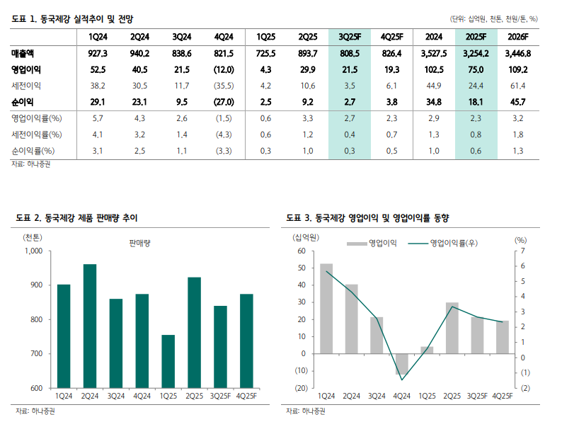 박성봉 하나증권 연구원은 이날 동국제강 기업분석을 통해 올 3분기 매출액은 8,085억원으로 전분기 대비 9.5% 줄어들며, 특히 영업이익은 28.0% 급감한 215억원에 그칠 것으로 내다봤다.
