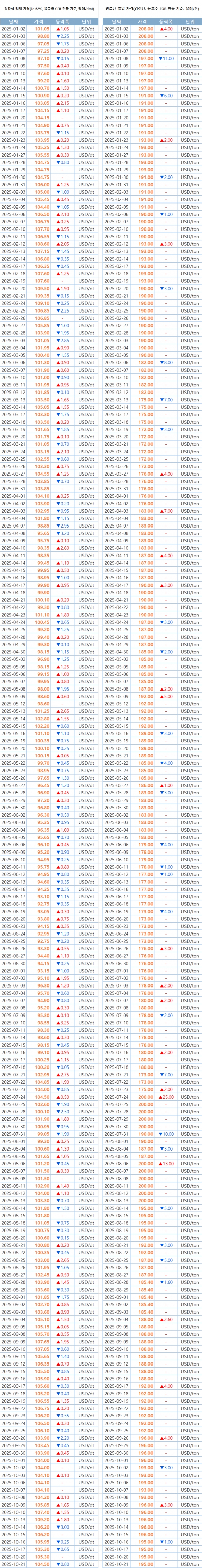 [표] 일일 철강 원료 가격 동향(10월 17일)