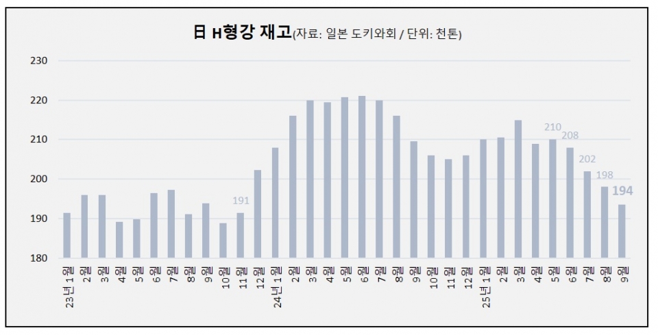 넉 달 연속 감소에 H형강 유통 재고는 지난 2023년 11월(19만1,400톤) 이후 1년 10개월 만에 최저치를 기록했다.