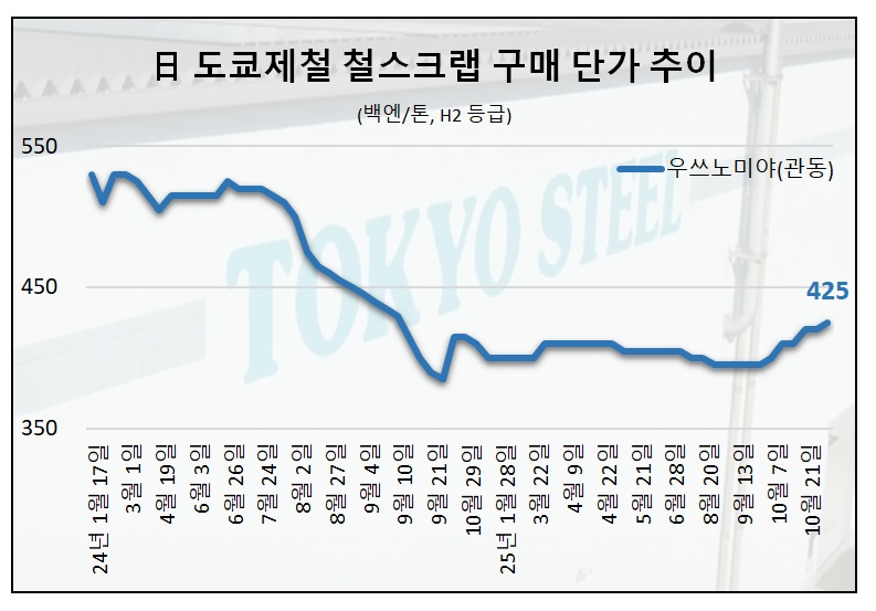 도쿄제철은 지난 1일(토)부로 철스크랩 구매 가격을 관서 야드를 제외한 전 거점에서 톤당 500엔 인상한다고 밝혔다. 관서 야드의 경우 이미 전날인 지난달 31일(금)부터 1,000엔 인상을 적용했다.