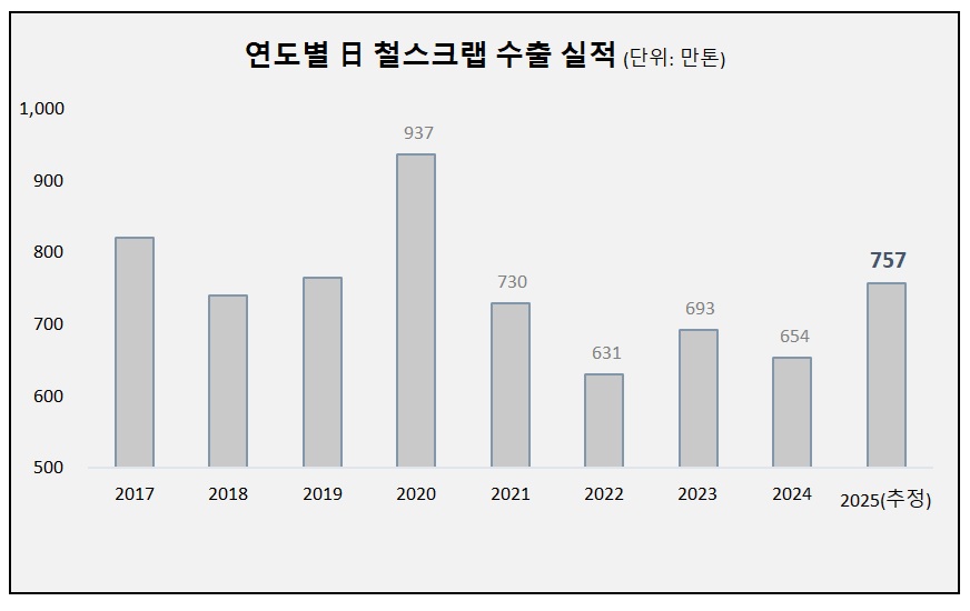 올 1~9월 日 철스크랩 수출 568만톤…전년比 21.4%↑