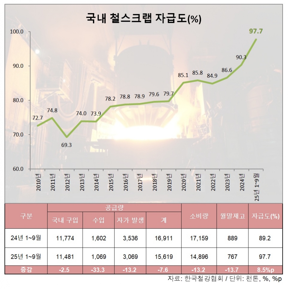 기어이 100% 돌파한 철스크랩 자급도…'불황형 자급' 체제 완성
