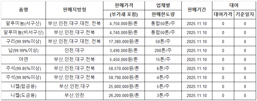 - ■ [표] 조달청 방출 가격 (11월 4일)