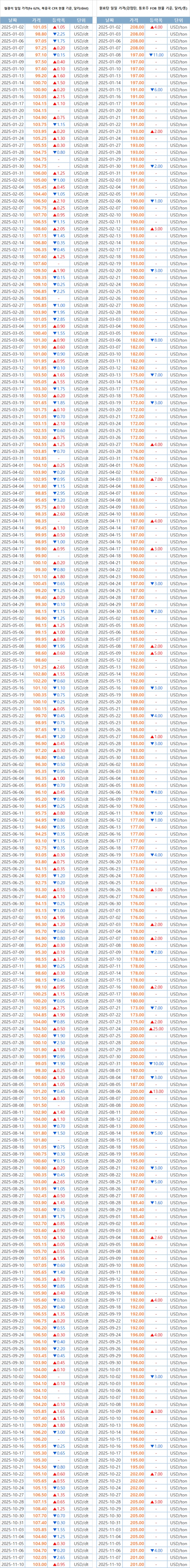 [표] 일일 철강 원료 가격 동향(11월 7일)