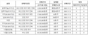 - ■ [표] 조달청 방출 가격(11월 11일)
