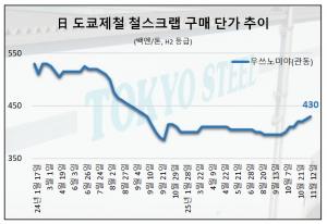 지난 11일 관동철원협동조합이 진행한 철스크랩 수출 입찰에서도 H2 가격은 전월 대비 644엔 오른 4만4,960엔을 기록한 바 있다. 역시 지난해 11월(4만5,180엔) 이후 1년 만에 최고치다.