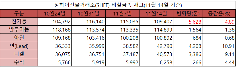- ■ [표] 상하이선물거래소 재고(11월 7일)