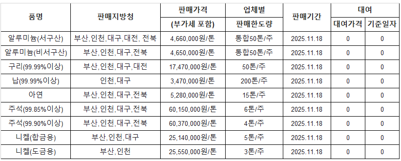 - ■ [표] 조달청 방출 가격(11월 12일)
