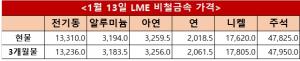 한편, 17일 수도권 중상 기준 스크랩 톤당 가격은 고급동 1,500만 원, 상동 1,430만 원, 파동 1,320만 원으로 거래됐으며 조달청은 18일 전기동 가격을 1,747만 원에 방출하며 전일 대비 16만 원 인하했다.