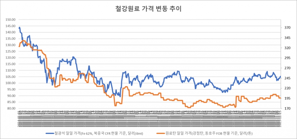 [표] 일일 철강 원료 가격 동향(11월 17일)