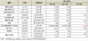 - ■ [표] 희유금속 가격 동향(12월 12일)