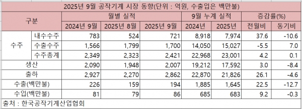 2025년 1~9월 공작기계 수주 전년比 0.1% 증가