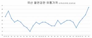 철강업계에 따르면 12월 중순 기준 국내 열연강판 유통가격은 국산 정품이 톤당 80만 원 초반선에서 형성되고 있다. 전월 대비로는 1만~2만 원가량 낮아졌다. 수입대응재는 톤당 70만 원 중후반선, 중국산을 포함한 수입산 열연강판은 70만 원 중반선을 형성하고 있다.