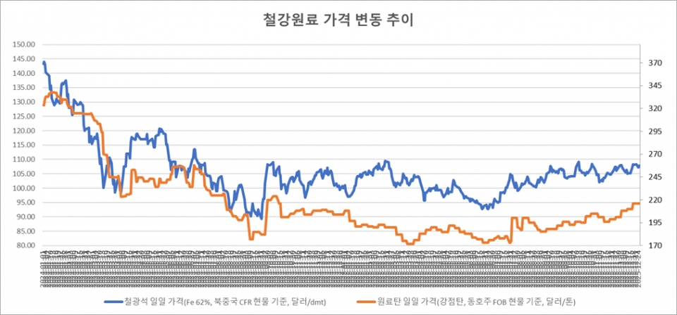 [표] 일일 철강 원료 가격 동향(12월 22일)