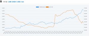 출처=KOMIS런던금속거래소(LME) 전기동 현물 및 3개월물 공식 가격이 6일(현지시간) 기준 톤당 각각 13,269.5달러, 13,230달러로 집계되며 사상 처음 톤당 13,000달러 돌파했다.