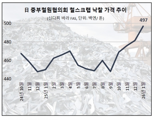 日 중부철원 철스크랩, 1월 신다찌바라 FAS 4만9,700엔 낙찰