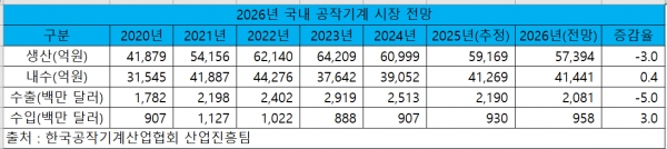 2026년 국내 공작기계 생산 전년比 3.0% 감소 전망