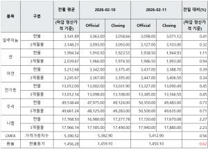 [표] LME 비철금속 및 환율 동향(2월 11일)