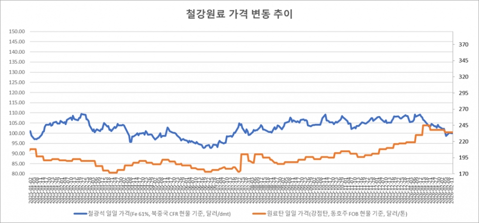 [표] 일일 철강 원료 가격 동향(2월 9일)