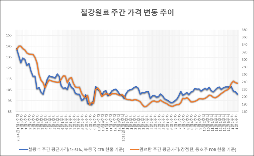 - ■ [표] 일일 철강 원료 가격 동향(1월 26일)