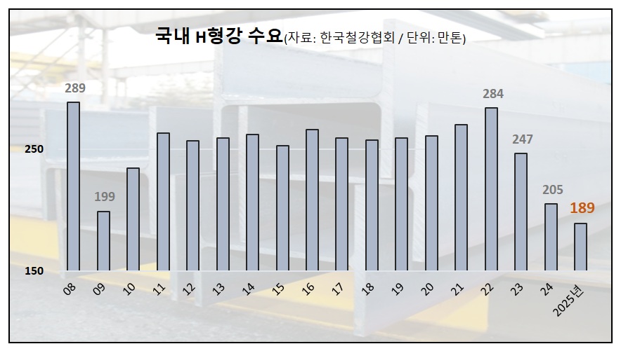 철근 이어 H형강 수요도 역대 최저권…금융위기 이후 첫 200만톤 붕괴